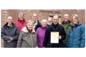 Thomas Schwarz, Erich Reuther, Hanna Jakubiak (verstorben), Volker Brase, Ingrid Bock, Bruno Raber, Gerhard Bock (mit Urkunde), Dr. Frank Ziegler, Agnes de Wall (v.l.n.r) - Weitere Mitglieder (nicht im Bild): Martin Jakubiak und Sabine Klier